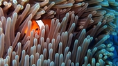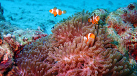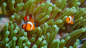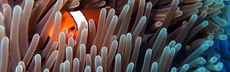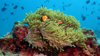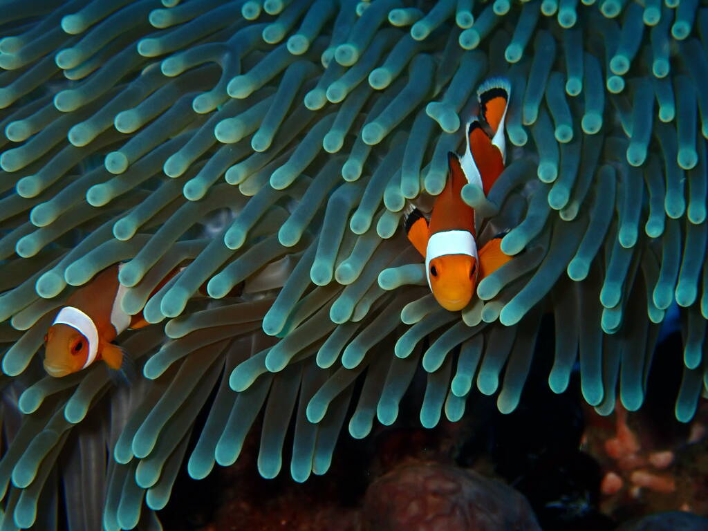 Unterwasser werden unsere Kategorien auf den Kopf gestellt. Bei diesen putzigen Falschen Clownfischen bilden die zwei größten Clownfische im matriarchalischen Harem das Brutpaar. Da alle Falschen Clownfische männlich geboren werden, ist hierbei zumindest schon das 'Weibchen' des Brutpaars einer Geschlechtsumwandlung gefolgt. Die weitere Rangordnung bestimmt sich bei den verbleibenden 'Männchen' im Harem durch Größe, nicht durch Alter. Das wesentlich größere Brutpaar zeigt dabei ein solches Dominanzverhalten, dass sich dadurch die verbleibenden Männchen nicht weiter entwickeln und damit als so gut wie kastriert gelten.